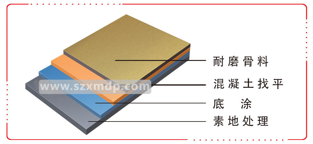 又稱金剛砂硬化耐磨地板,硬化地坪,耐磨地坪,防塵耐磨地坪,重載地坪等。